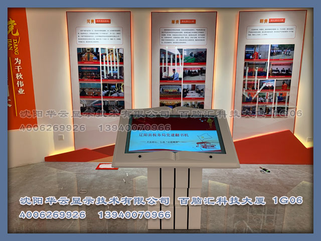 辽阳市辽阳县税务局党建展厅项目安装完成 -55寸挥手翻书一体机,65寸滑轨屏,65寸触摸一体机
