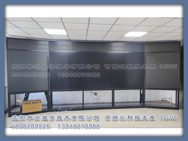 项目:展示为2*3拼接屏方式,3.5mm拼缝做为指挥中心显示使用,画面清晰。左右副屏使用LED p5显示文字信息。最顶使用单红LED屏显示标语等信息。