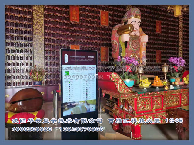 大连某寺院定制LOGO立式广告机安装完成